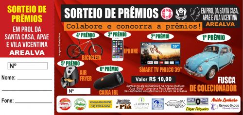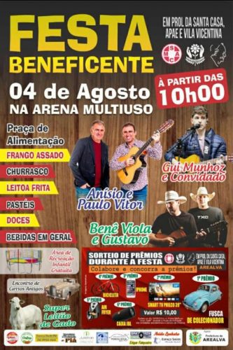 E vem ai a 2ªGrande Festa Beneficente em prol as três entidades de Arealva: Apae , Santa Casa e Vila Vicentina!!